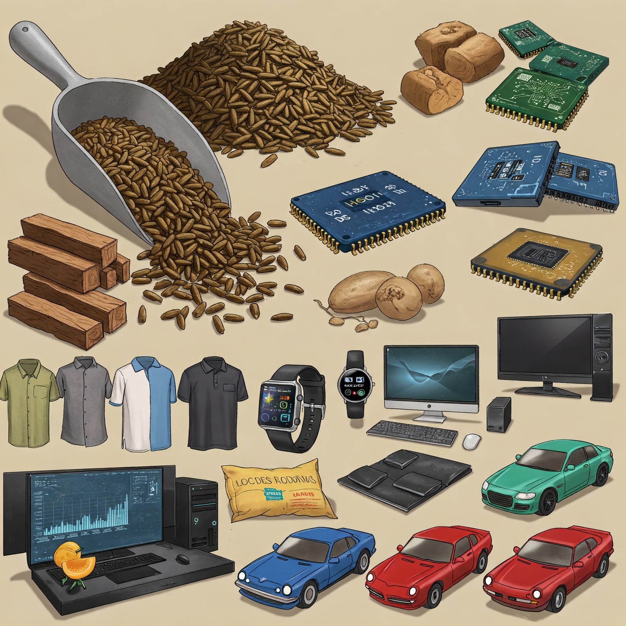 복잡한 서플라이체인은 자동차 산업에서만 그치지 않는다. 동물 사료의 경우 미국, 아르헨티나, 캐나다와 중국에서 혼합한 곡물을 원료로 사용한다. 미국은 주로 목재로 집을 짓는데, 건축에 필요한 목재의 많은 부분은 캐나다와 멕시코에서 수입하여 사용한다. 반도체의 경우 미국과 유럽의 기술을 이용하여 제작하는데, 대부분 대만, 한국과 일본에서 공급 받고 있다. 서플라이체인은 의식주를 포함하여 산업 전방위로 진행되어 있다.