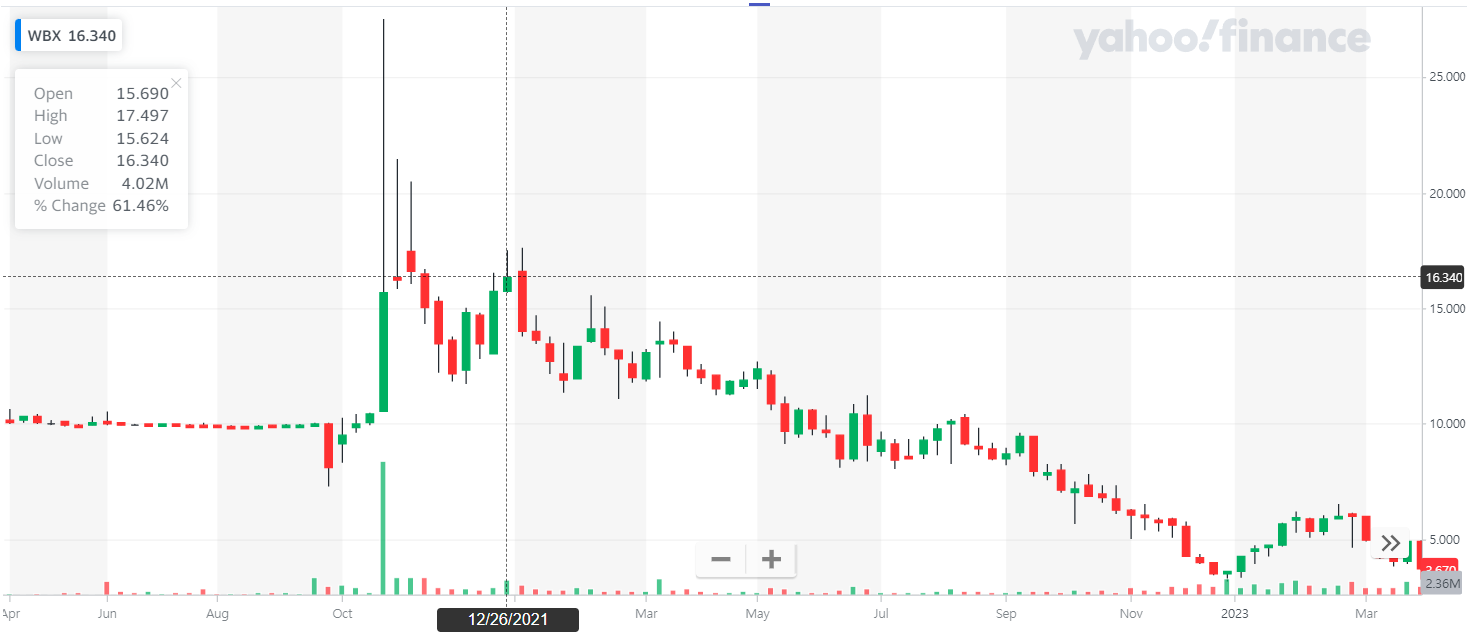 블링크 차징(BLNK)과 차지포인트 홀딩스(CHPT)의 투자에 관심이 있어 조사하다 보면 월박스(WBX)라는 기업이 언급되는 기사를 볼 수 있다. 오늘은 월박스(WBX)의 대략적인 내용이다.