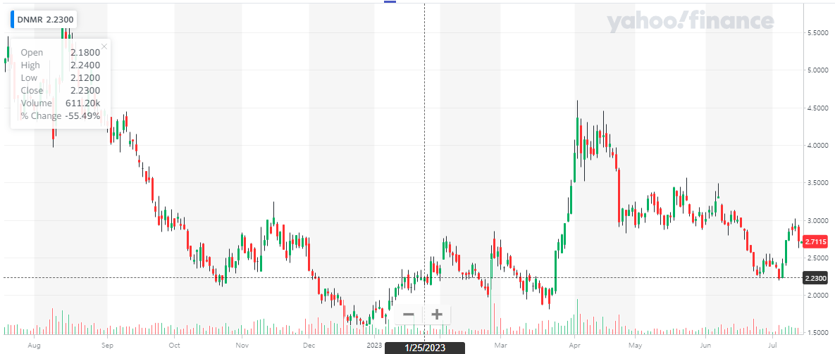 2023년 말까지 연평균 67%의 성장률 예측은 지난 3년간 연간 11%의 성장률과 비교하여 상당히 고무된 수치이다. 또한 해당 산업에서의 연간 매출 성장률은 4.7%로 상대적으로 예측되는 성장률은 매우 높은 수치이다. 물론 그동안의 비즈니스 가 좋지 못하여 작은 이익 증가율로도 더욱 높은 증가율을 보이는 것도 있지만 최근 몇 년간에 비해 성장 전망이 더 밝다는 것은 분명하며 다니머 사이언티픽(DNMR)이 산업 전반보다 더 빠른 성장을 기대하고 있다고 볼 수 있다.
